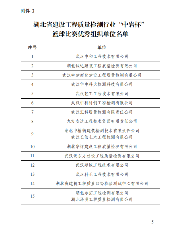 此次籃球比賽豐富了我省建設(shè)工程質(zhì)量檢測行業(yè)的員工生活,培養(yǎng)了檢測人“頑強(qiáng)拼搏、奮勇爭先”的體育競技精神,賽出了水平,賽出了風(fēng)尚,賽出了友誼,加強(qiáng)了同行之間的交流、促進(jìn)了合作,為共同推動(dòng)湖北省建設(shè)工程質(zhì)量檢測行業(yè)的高質(zhì)量發(fā)展作出了貢獻(xiàn)。