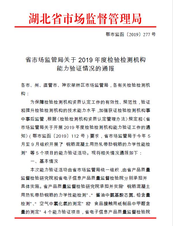省市場監(jiān)管局關(guān)于2019年度檢驗(yàn)檢測機(jī)構(gòu) 能力驗(yàn)證情況的通報(bào)