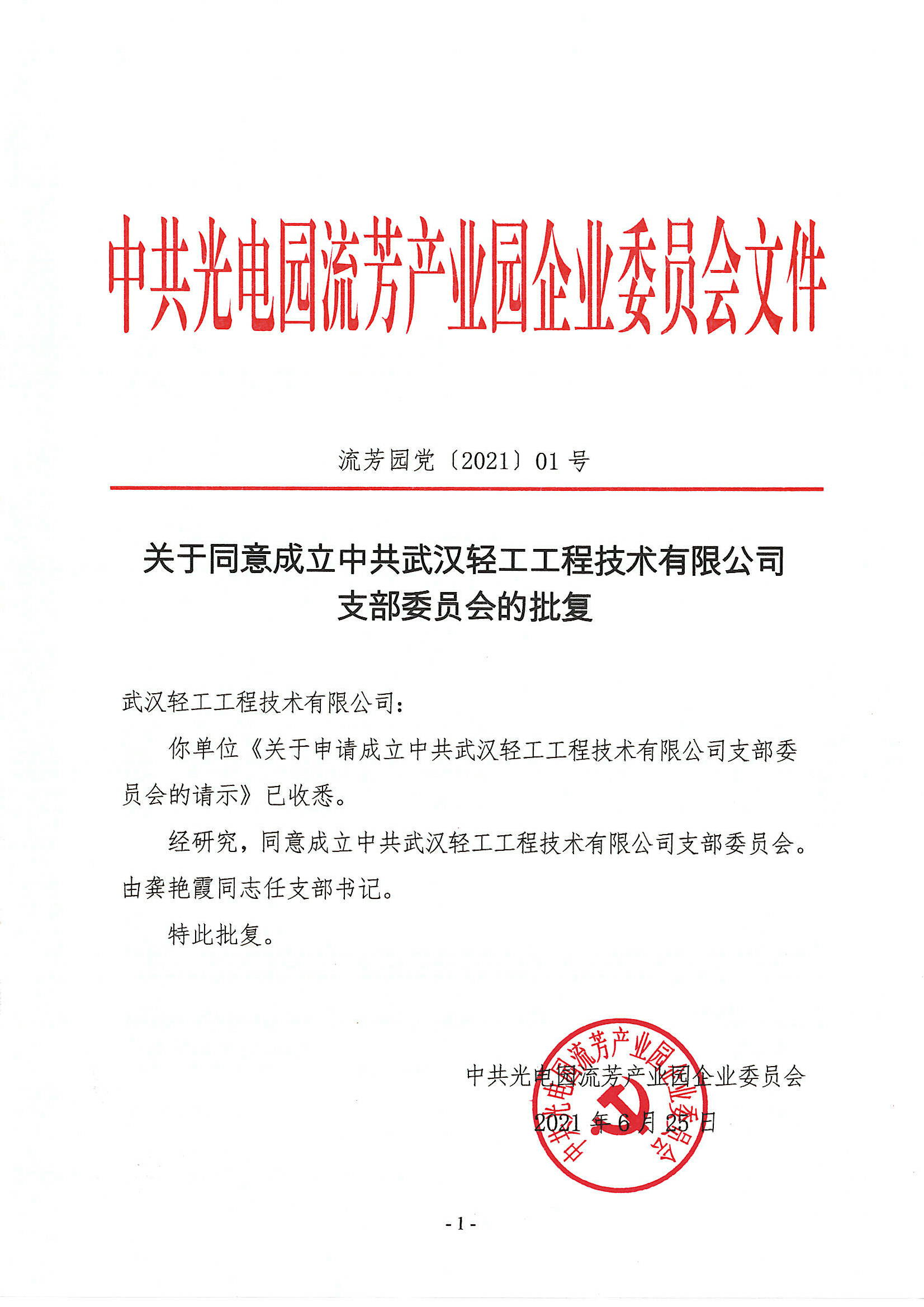 2021年6月30日下午2點(diǎn),中共光電園流芳產(chǎn)業(yè)園企業(yè)委員會(huì)黨辦書(shū)記江峰、黨辦委員李偉、黨辦專(zhuān)員李曉葉一行三人到我公司宣布了關(guān)于同意成立中共武漢輕工工程技術(shù)有限公司支部委員會(huì)的決定。